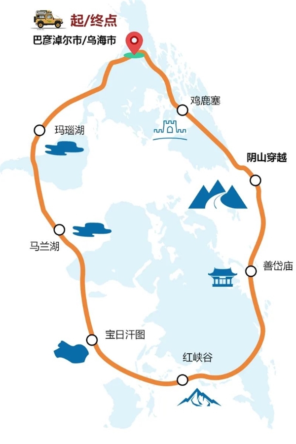 车辆8:00在京藏高速【官厅服务区】集合,办理相关手续,8:30准时出发,望大家不要迟到,午餐服务区简单解决,约傍晚到达巴彦淖尔,集体晚餐,晚餐后大家自由活动。